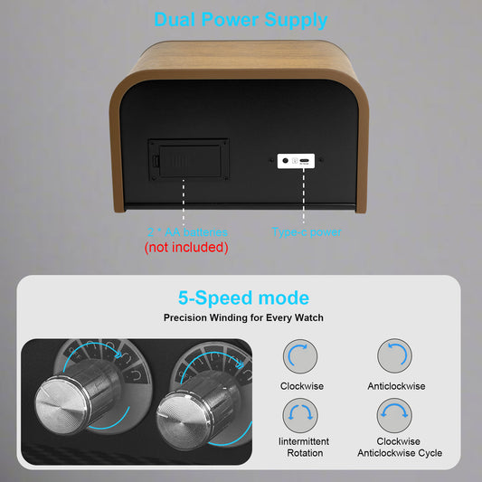 LELTNSOU-Dual Watch Winder – Silent Motor Automatic Watch Rotator, Wood Grain Display Box